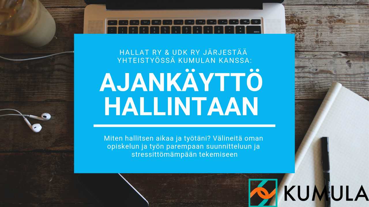 MITÄ: Yhteistyössä Kumulan kanssa Hallat ry:n ja UDK ry:n yhteinen koulutus ajankäytön hallinnasta