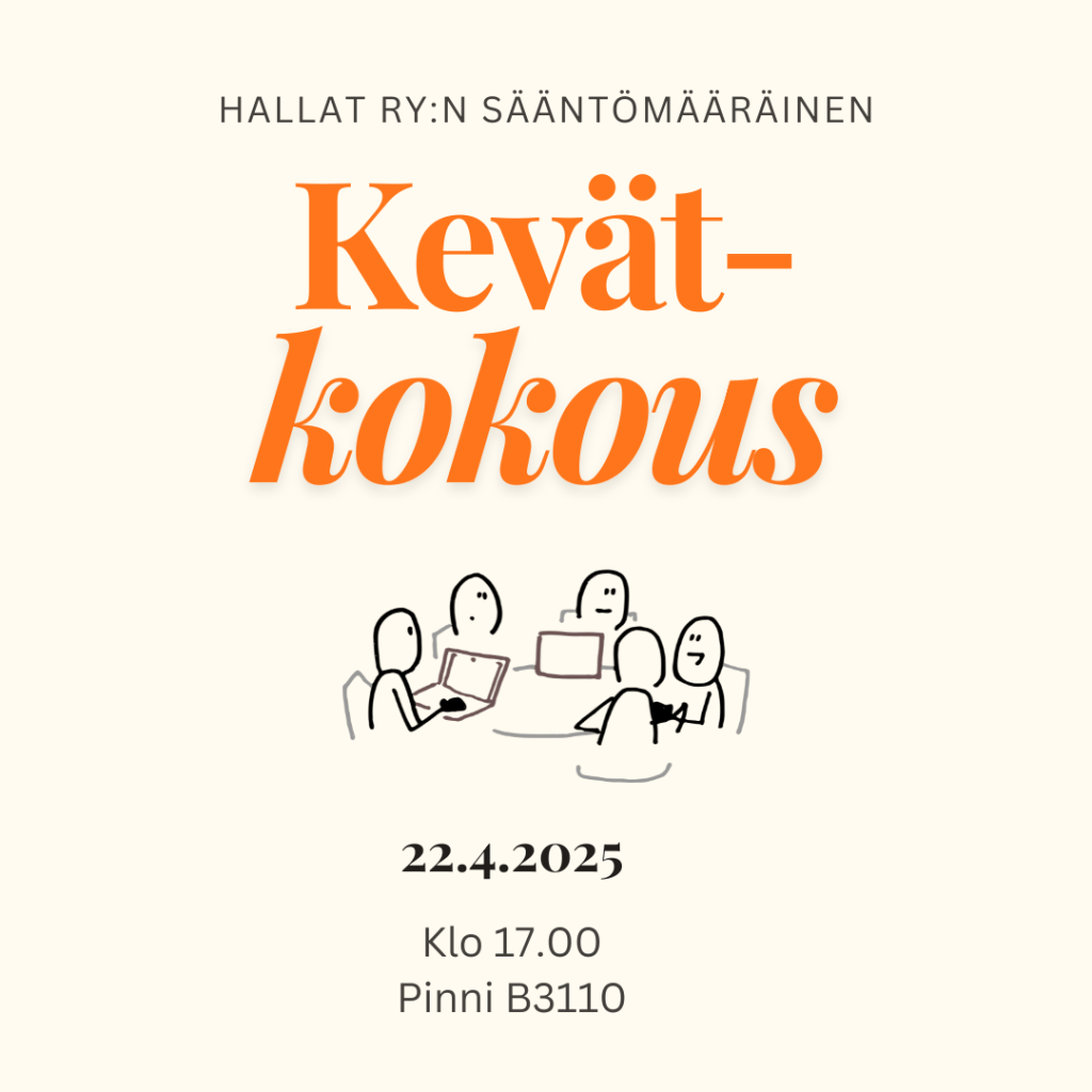 Kokous järjestetään Tampereen yliopiston Pinni B3109-tilassa. Kokoukseen on myös mahdollista osallistua Zoom-yhteydellä.