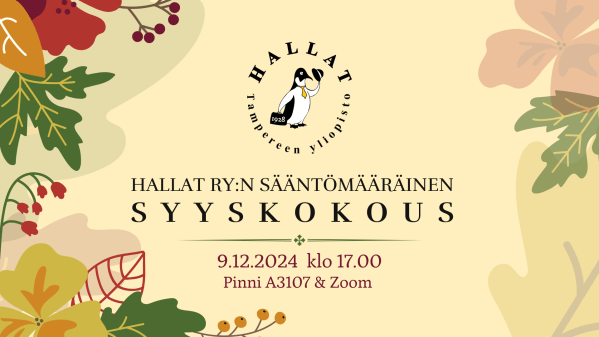 Tervetuloa Hallat ry:n sääntömääräiseen syyskokoukseen!